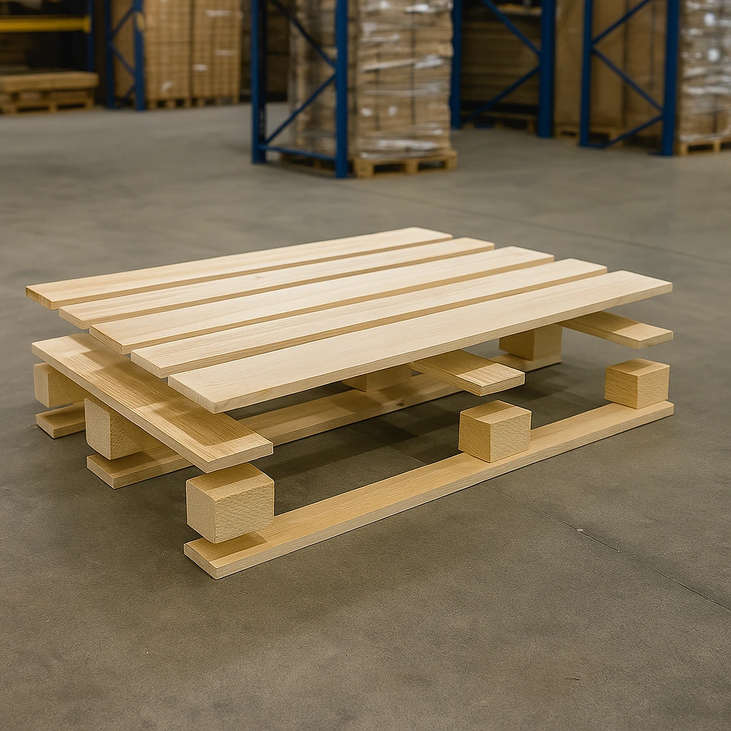 Nasze palety przemysłowe to trwałe konstrukcje drewniane o wysokiej nośności, projektowane z myślą o bezpiecznym magazynowaniu i transporcie towarów