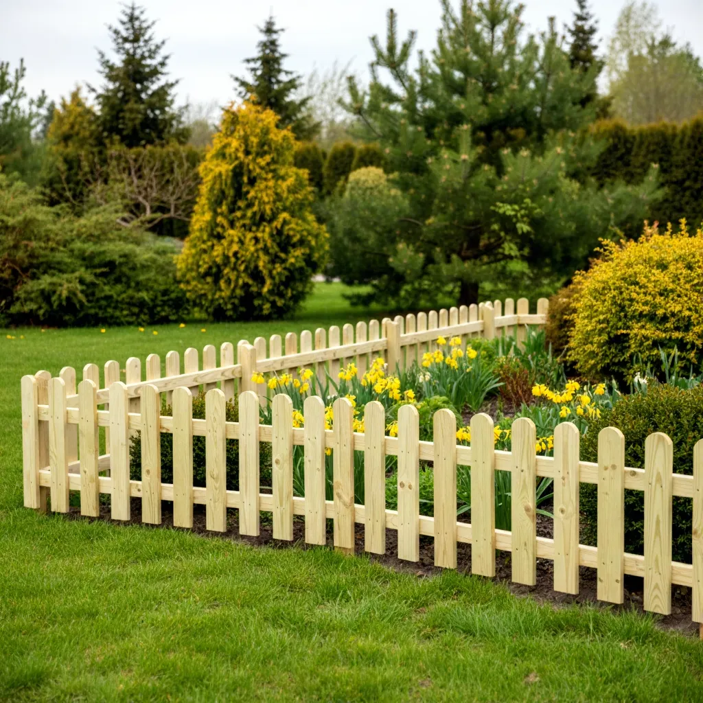 Może to być klasyczny płotek sztachetowy wykonany z drewna świerkowego (również impregnowany), lub nowoczesny płot drewniany w systemie Falcon. Ten ostatni zgrywa się idealnie z nowoczesnym stylem budownictwa, a jego konstrukcja opiera się na: